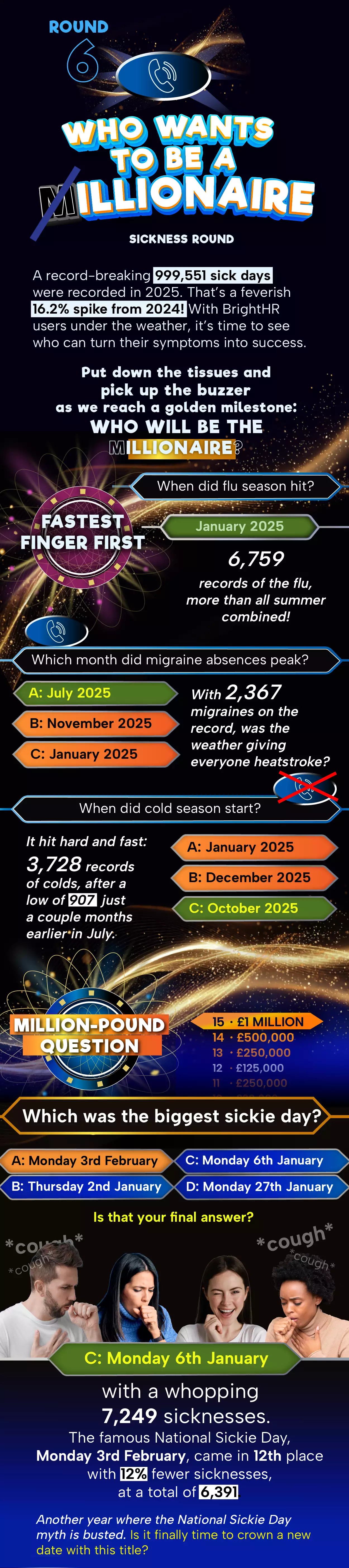 According to our proprietary data, sickness records have increased year on year. 2025 saw a 16.2% spike in absences!