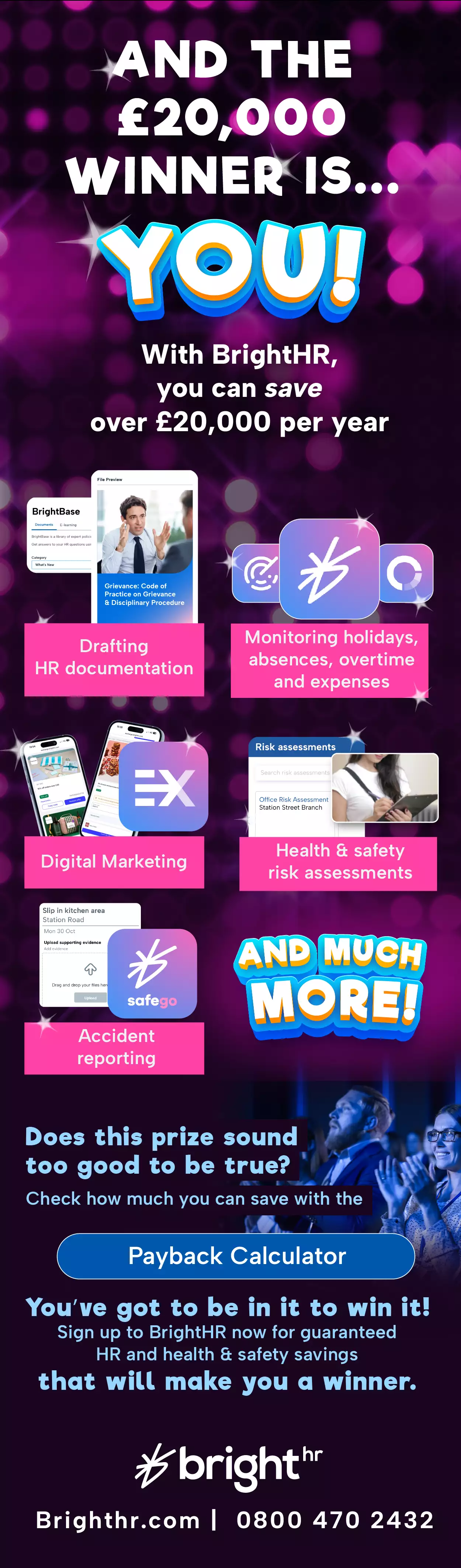 With BrightHR you are always a winner, saving up to £20,000 per year. Cut the admin time, reduce the risks and stay compliant with BrightHR in 2026.